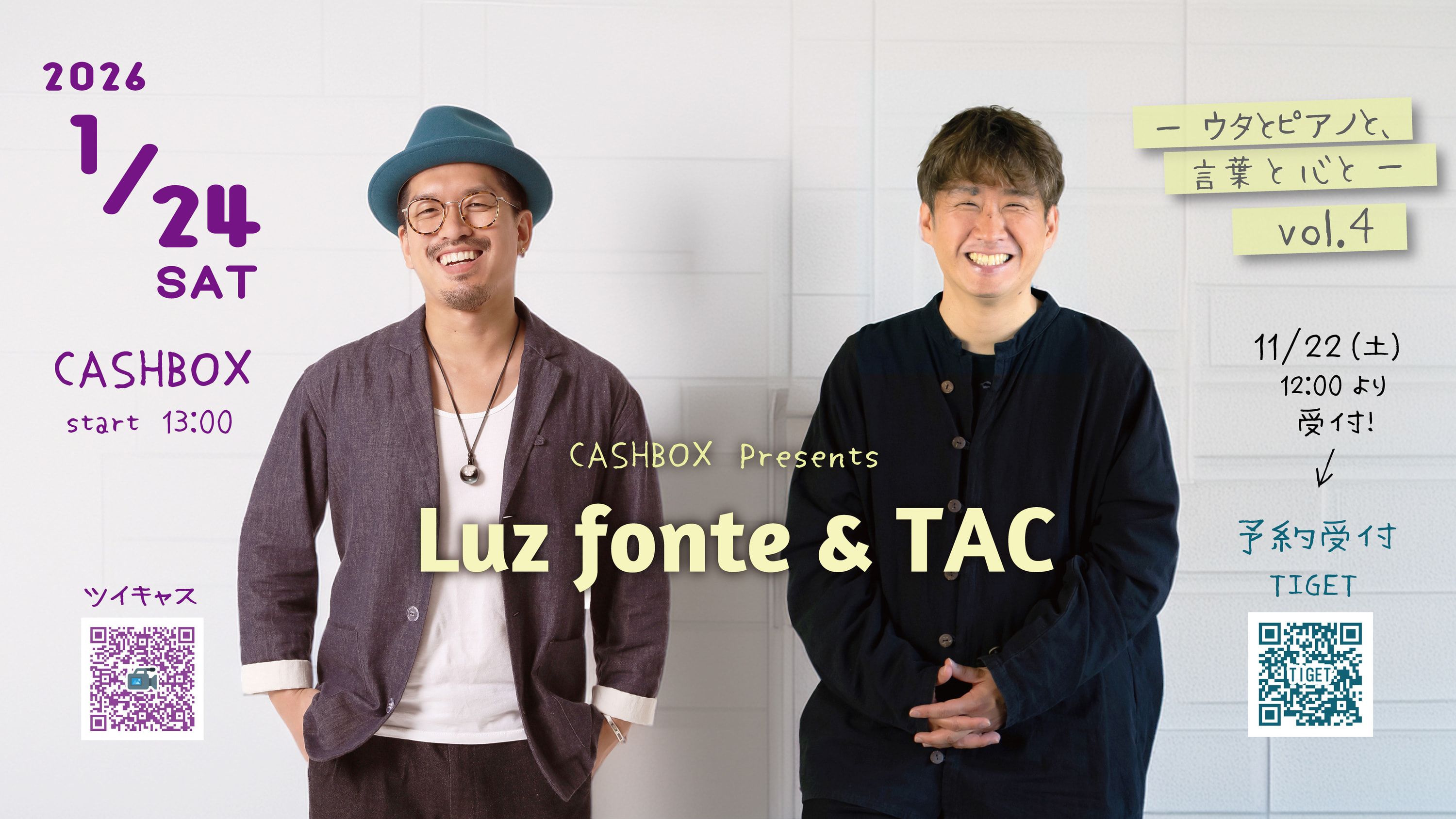2026.1.24.Sat新春ツーマンショー2026 ~ Luz fonte × TAC ~『ウタとピアノと、言葉と心と vol.4』 予約受付中!